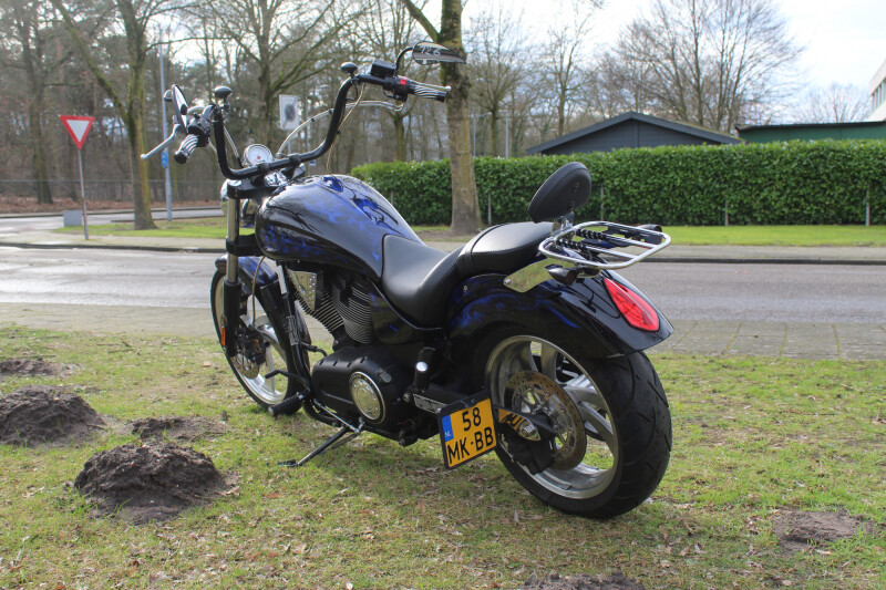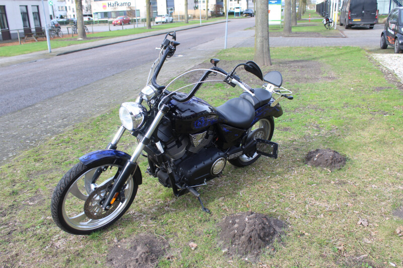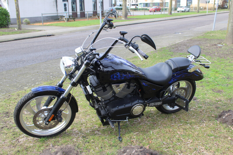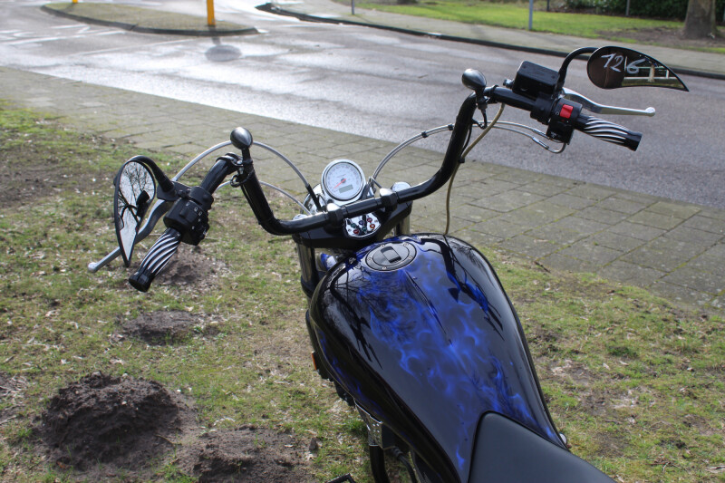 Zwart spuitwerk met bleu flames