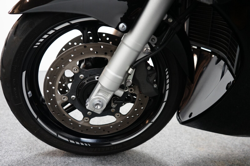 Een in zeer mooie staat verkerende Yamaha FJR 1300 ABS met kofferset, Wheel striping, Val protectie, Cruise control, Navigatiehouder, Handvatverwarming, Elektronisch verstelbaar windscherm en Instelbare rij-modi.