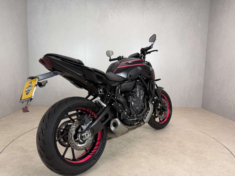 De MT-07 staat bekend om zijn speelse karakter en wordt aangedreven door de krachtige CP2-tweecilinder, die zorgt voor vlotte acceleratie en een levendige rijervaring. Dankzij het lage gewicht en de wendbaarheid is deze naked uitermate geschikt voor zowel stadsverkeer als bochtige wegen. Uitgevoerd met stuureind spiegels die het sportieve uiterlijk versterken en een korte kentekenplaathouder voor een strakke afwerking.