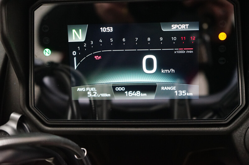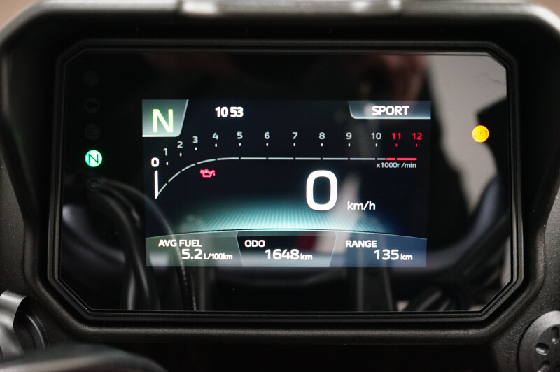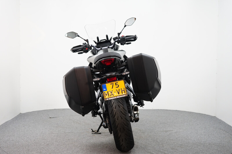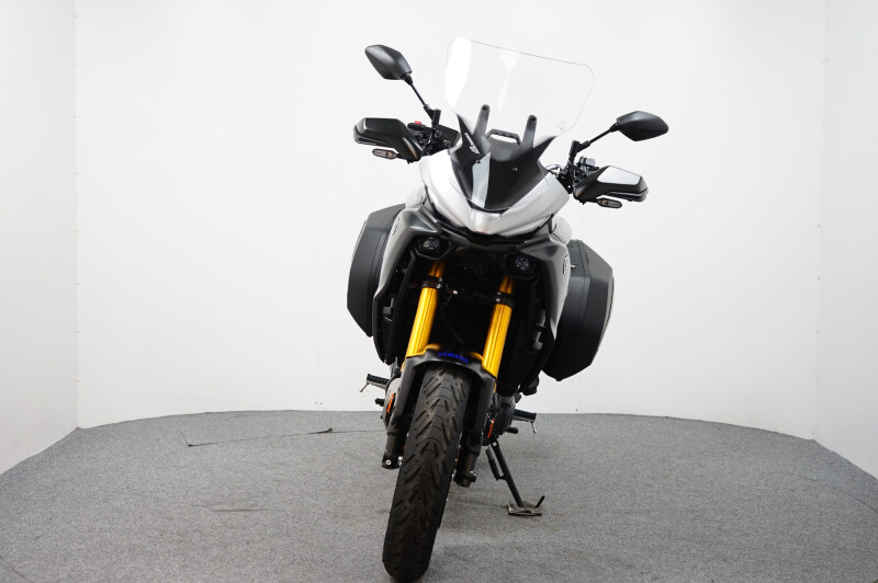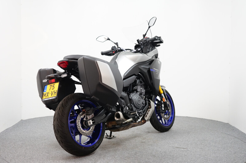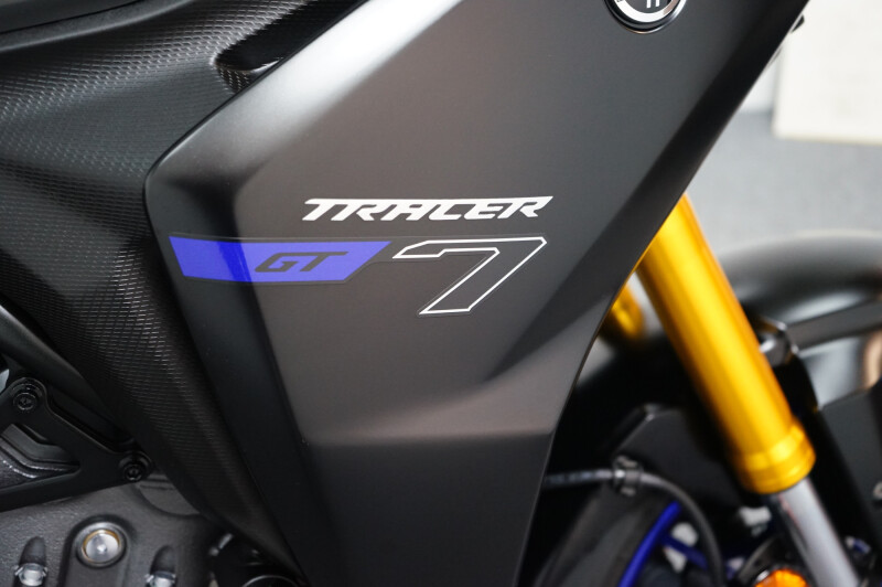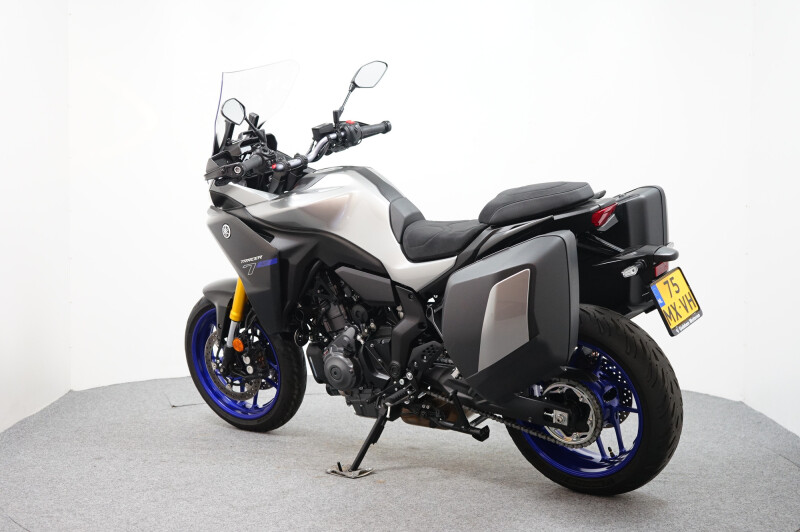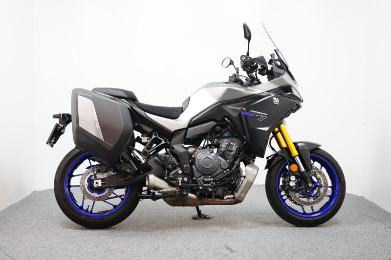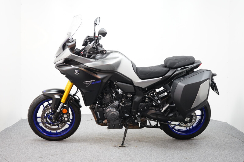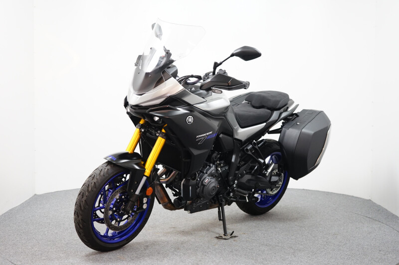Een in nieuwstaat verkerende Yamaha Tracer 7 GT ABS met Cruise control, Traction control, Handvatverwarming, Comfort buddy, Ingebouwde navigatie, Middenbok, Kofferset en instelbare Rij-Modi.