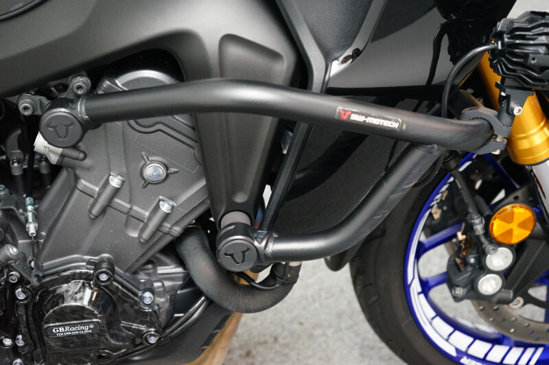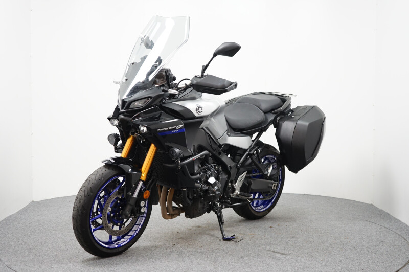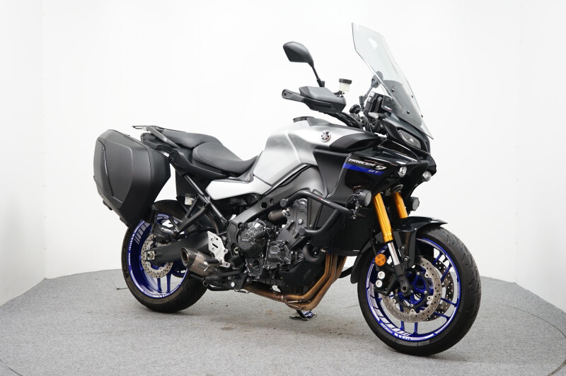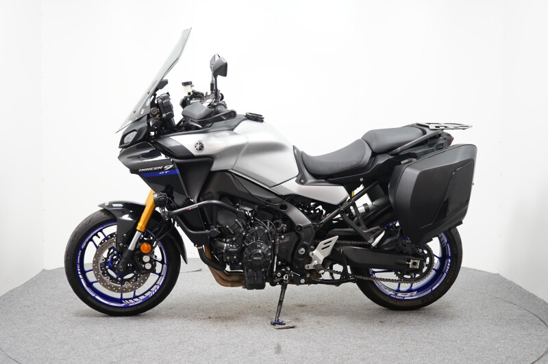 Een in zeer nette staat verkerende Yamaha Tracer 9 GT met SW-Motech valbeugels, Mistlampen, Dominator sportdemper, Zijstandaard verbreder, Korte Kentekenplaathouder, Cruise control, SP Connect telefoonhouder en Handvatverwarming. Motor heeft een ECU flash gehad.
