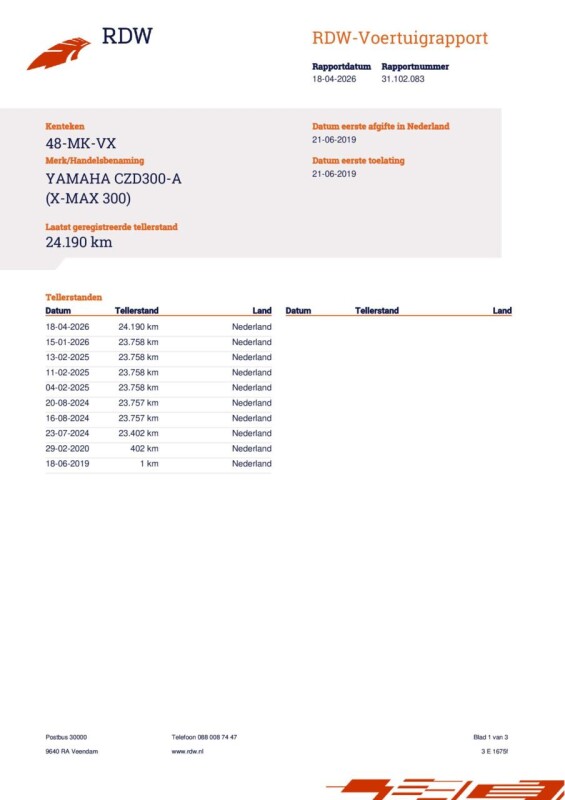 Kilometerstand : |