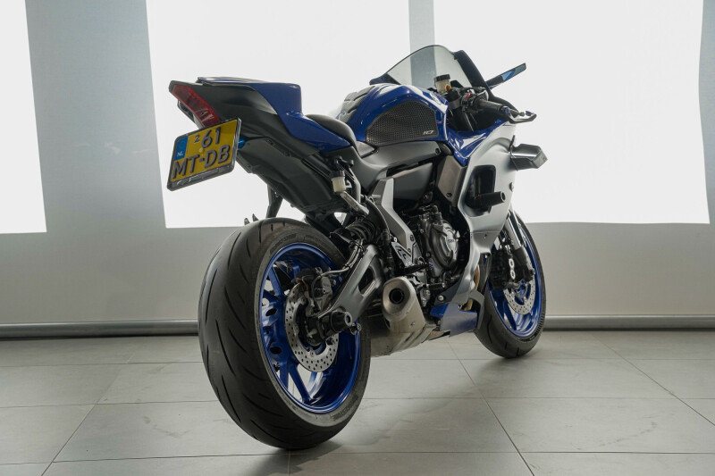 Strakke en sportieve Yamaha R7 uit 2023, afkomstig van inruil en in uitstekende staat. Deze middenklasse supersport combineert een agressief design met een verrassend toegankelijk karakter, waardoor hij perfect is voor zowel sportief straatgebruik als scherp bochtenwerk. De krachtige CP2-motor levert direct koppel en zorgt voor een levendige rijervaring, terwijl het lichte chassis en de sportieve zithouding maximale controle en feedback geven.